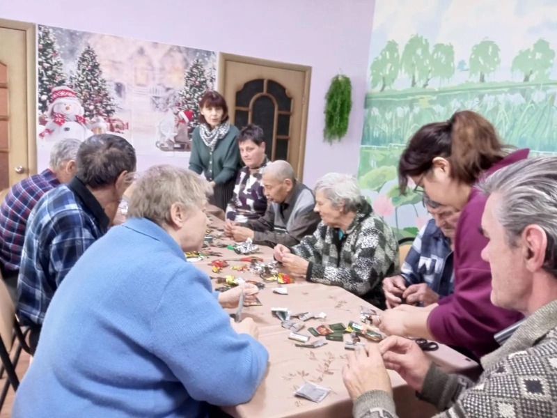 Самый загадочный и яркий праздник, Новый год, служит поводом для украшения дома игрушками и подвесками различной формы и размеров. Для постояльцев Воленского соццентра учреждение является домом. Поэтому социальный работник центра решила провести для пожилых людей мастер-класс по изготовлению снежинок для ёлки с помощью фольги, фантиков от конфет и обёрток чайных пакетиков.