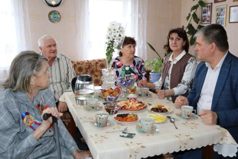 За чашкой чая Алексей Васильевич пообщался с Ларисой Михайловной и её семьей, пожелал ей здоровья, бодрости духа.